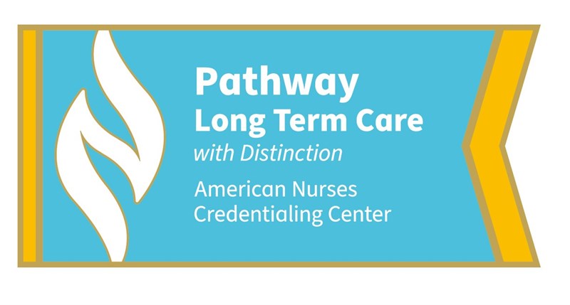 This Pathway to Excellence Long Term Care Designated with Distinction lapel pin features a vibrant, high-quality finish with precise detailing, measuring 1.25" wide by 0.5" high. Crafted for durability and style, it includes a secure military clutch back for reliable wear.